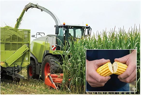 Timing is everything. We harvest at the exact “half milk-line stage” (80-90 days) when nutrient levels peak. We use advanced harvesters to chop the crop into uniform lengths, ensuring kernel breakage for better digestion.