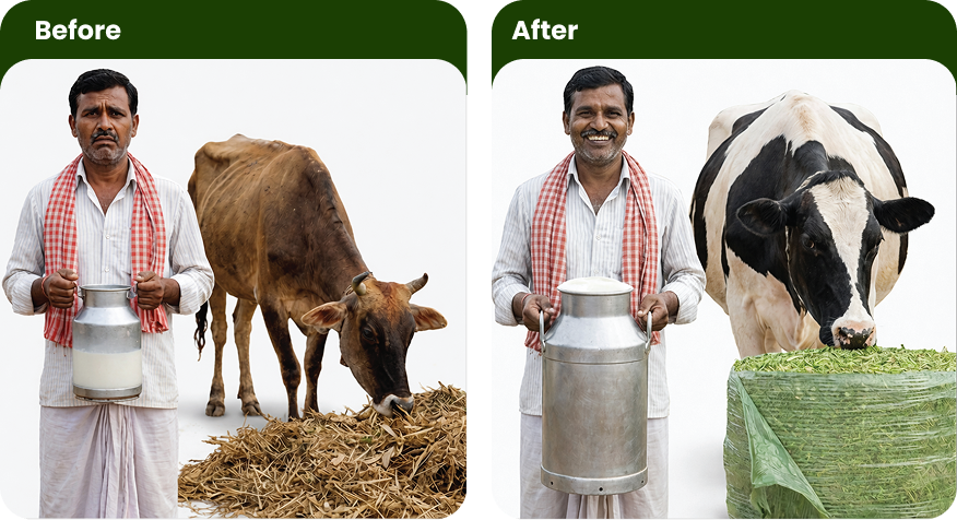 “Moving to TruSilage was the best decision for my farm in Rudrampeta. Previously, I dealt with massive wastage from loose fodder, but these high-density, compact bales eliminate handling losses entirely. My cows are much more energetic, showing improved rumen health and digestion thanks to the precision 15-20mm chop length. On average, I am now getting an extra 1.5 litres of milk per cow every single day, which has significantly boosted my monthly take-home income.”